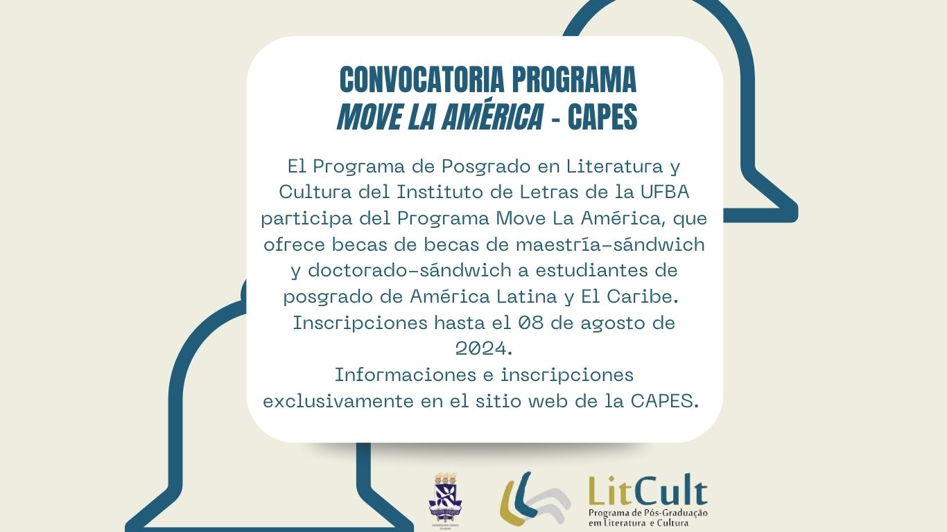 O Programa de Pós-graduação em Literatura participa do Programa Move La América, com a oferta de vagas para mestrado e doutorado sanduíche.